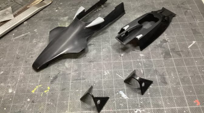 ベルギーGP仕様のカウル作成中 3Dプリントで作ったミラーに、ロールバーはピーターソン用のモノを加工 しかし難物なのがこのサイドポンツーン、フロント側のエアインテーク、アウトレット、リアのデッキ部部分が全部別パーツになっ … 続きを読む タミヤ1/20ロータス79製作