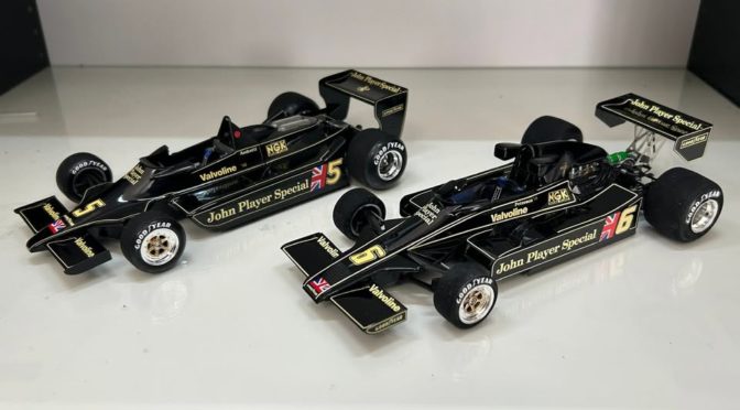 1978年ベルギーGP 1-2フィニッシュ ロータス79 No.5 マリオ・アンドレッティ車 ロータス78 No.6 ロニー・ピーターソン車 11月9日のホビーフォーラムで展示する2台が完成しました 今回はジオラマっぽく … 続きを読む タミヤ1/20ロータス78&79