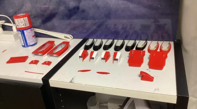 1/20ロータス72シリーズ製作、ゴールドリーフカラーになる2台のサフ掛け。 72C用パーツの成型色は赤、72E用はノーズが黒でモノコックはグレーとそれぞれ異なるので、違和感出ない様に一度全てグレーサフを吹いてから白サフ … 続きを読む EBBRO 1/20 Lotus72製作 Vol.18