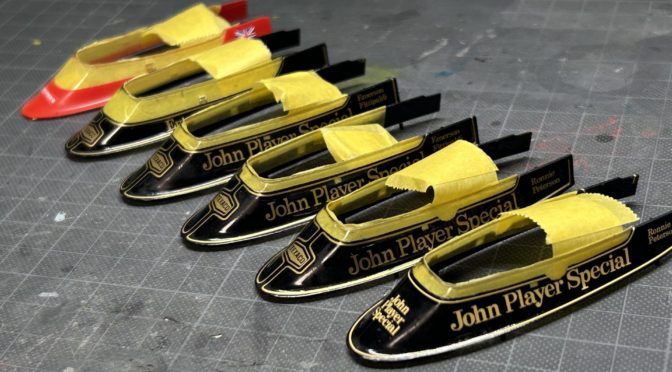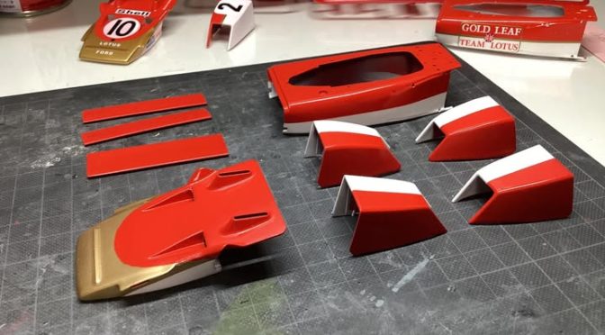 全然進んでいない様に見えるけど、やっぱり進んでいないロータス72シリーズ製作。 72Cのサイドカウル、クリア塗装でつまらないミスをしてしまい大量の埃を噛んでしまった。ペーパーで落とせるレベルではなく、一度塗装を全て落とし … 続きを読む EBBRO 1/20 Lotus72製作 Vol.44