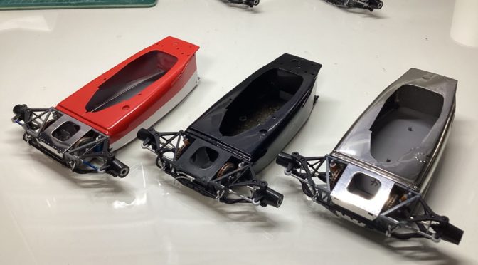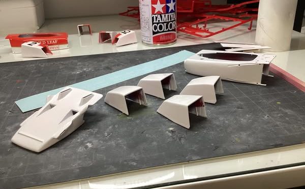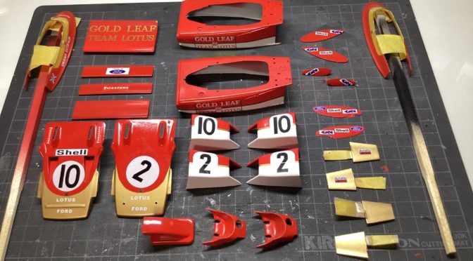 ロータス72シリーズ製作、赤が染み上がってしまった72Cパーツをリカバリーして研ぎ出しが終わり、漸く前に進む事が出来た。 って事でエマーソン車3台は次第に形になって来た。
