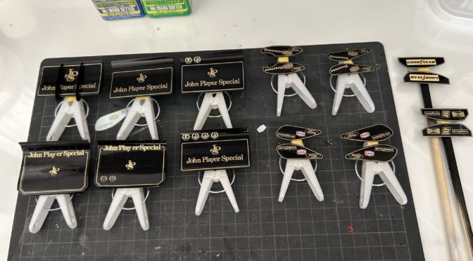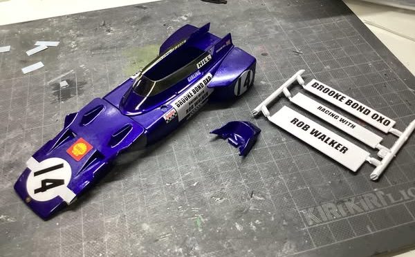 ロータス72シリーズ製作、リアウイングのJPSデカールを貼り終え、これでJPSは全て完了。いやー時間掛かった。 次はゴールドリーフ、既製品だから少しは楽かな?いやそんなに甘くはないか?