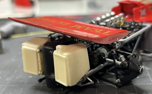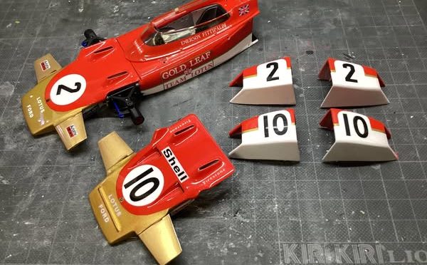 すっかりこの連載も月次更新となってしまいましたが、今回は前回に引き続き、1973年シーズン終盤に投入されたオイルタンクとそれに伴い変更されたリアエンド周りの製作です。 左の写真はこの新形状のオイルタンクが投入された197 … 続きを読む EBBRO 1/20 Lotus72製作 Vol.7