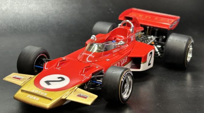 ギブバース! ロータス72D 1971年オーストリアGP E.フィッティパルディ車 完成しました。 未来から飛んで来たかの様に斬新な前年型72Cに、何故か60年代に逆戻りしたかの様なインダクションとリアウイングがアンバラ … 続きを読む EBBRO 1/20 Lotus72製作 Vol.61
