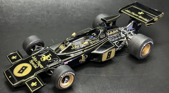 ギブバース! ロータス72D 1972年スペインGP E.フィッティパルディ優勝車 完成しました。 このマシンはなんと言ってもJPSカラー、そして前年型をベースにしながらもレース毎にモディファイを受けたリアウィング。しか … 続きを読む EBBRO 1/20 Lotus72製作 Vol.62