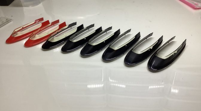 ロータス72シリーズ製作、リアウィング翼端版祭り。 全て以前にエッチングで自作したモノで、上の2枚はちょっと表面の仕上がりがイマイチだったのでサフ掛け。 一番上は1971年仕様、2番目はちょっと大型化した1972年初期型 … 続きを読む EBBRO 1/20 Lotus72製作 Vol.20