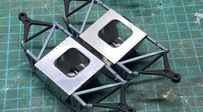 ロータス72シリーズ製作、先ずは72D初期のオイルタンクを2台分工作。 エッチングで作ったプレートをギアボックスに挟み、左右のステーをプレートの穴に差し込んでオイルタンクとリアウィングを固定する仕組み。 エッチングは既に … 続きを読む EBBRO 1/20 Lotus72製作 Vol.15