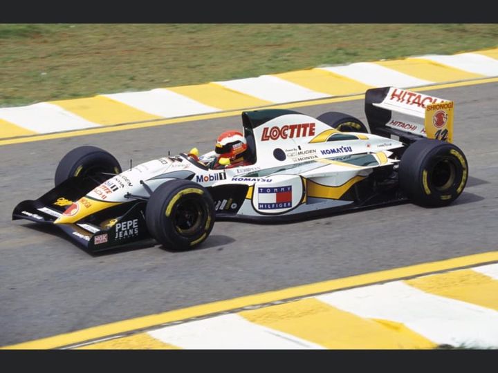 再現したいのは1994年開幕戦のブラジルGPのJ.ハーバート車。STUDIO27製デカールでこの意味不明なグラフィックを再現しているが、実際にカラーコピーしてマシンにフィットさせてみると、サイドポンツーン上面の帯が短過ぎるし、イエローの半円形は形が違うし、コクピット前面のパーツは無いし、ノーズの帯は形状にムリがある。残念ながらコレは殆ど使い物にならないので、107B同様にマスキングパターンをマスキングシートに印刷して塗装で仕上げるしか無い。