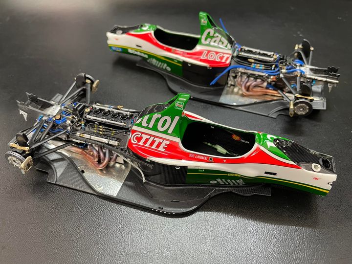 1/20 Lotus 107 by Tamiya, Factory ロータス107シリーズ製作 Vol.101 2022-10-26 Ketteringham Factory コメントする Tweet ロータス107シリーズ製作、クリア乾燥を待つ間にリアセクションの組み立て。アップライトとブレーキを組み付けてアンダートレイとドッキングしてエキパイを取り付けた。モノコックは仮置きで。 Tweet