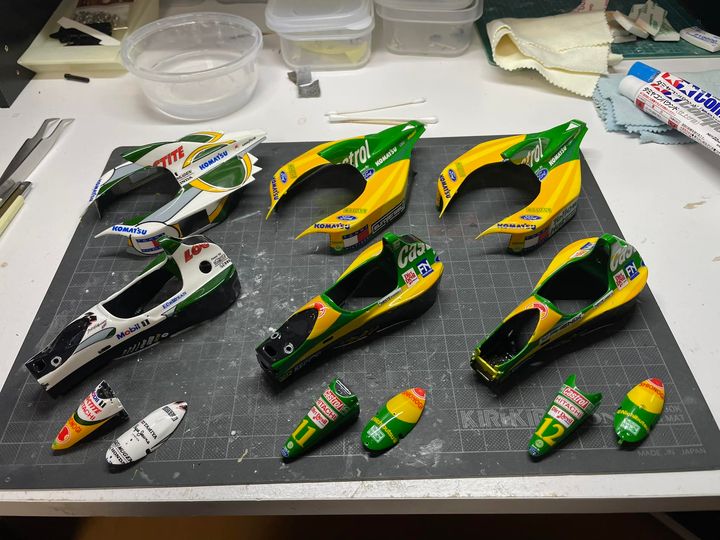 ロータス107シリーズ製作、残る3台分のカウルとモノコック磨き終了。