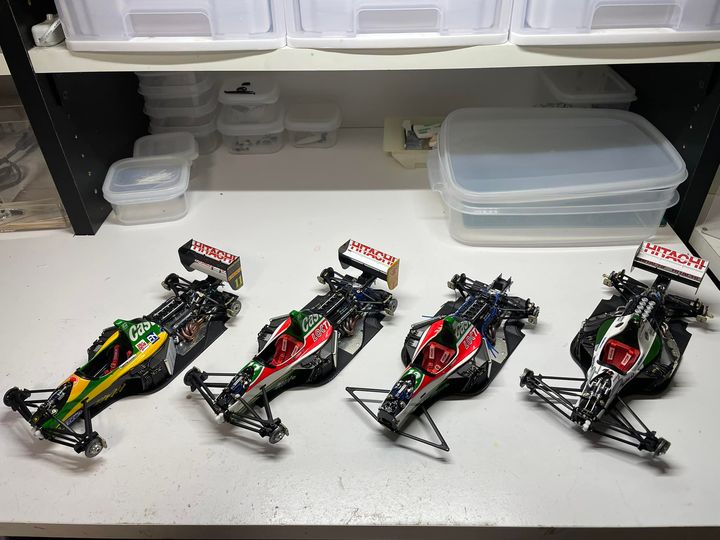 ホビーフォーラムも終わり、ロータス107シリーズも当日迄に出来なかった細かい箇所を残すだけになった。あと107Bの一台はアームが曲がっているのを直そうとしたら誤って折ってしまったので修復しないと。