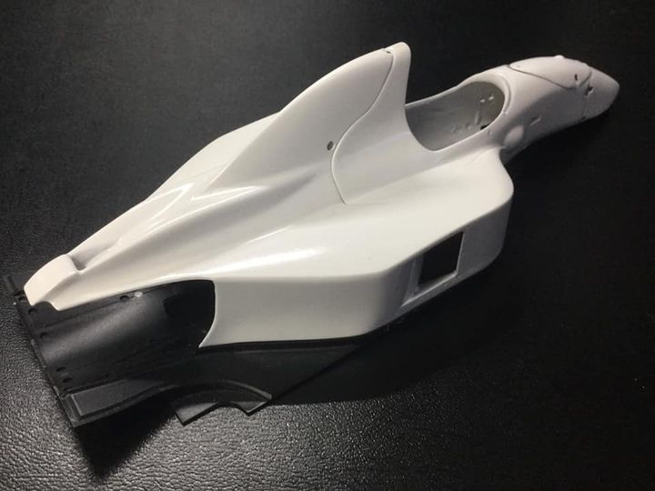 ロータス107シリーズ製作、モノコックの塗装開始。