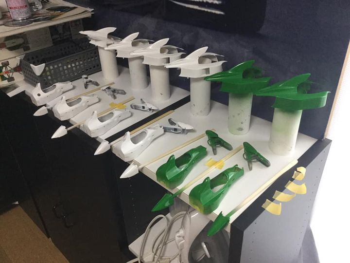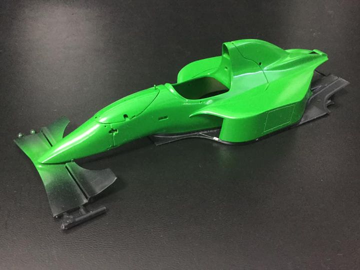 107はタミヤの指定色はベネトンB188用のパークグリーンなのだが、過去作の1:12ではこの色が明る過ぎて不満だったので今回はGSIのデイトナグリーンにイエローを4:1位で調色してエアブラシ、結果狙い通りの色になってくれた(^_^)v