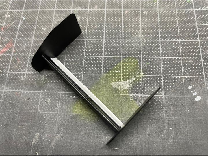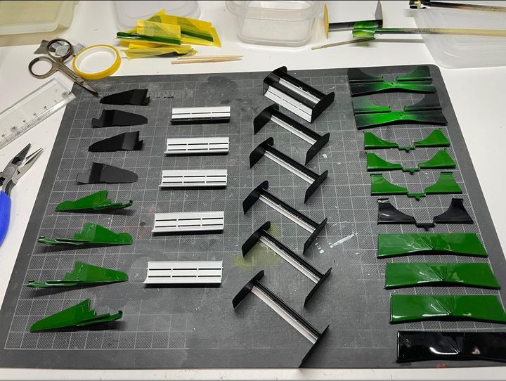 ロータス107シリーズ製作、ウイング類の塗装中。