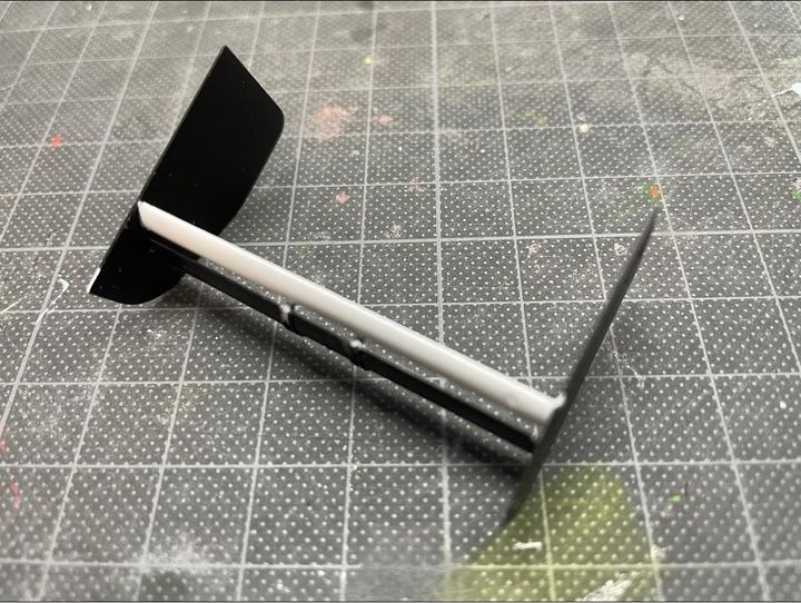 タミヤのキットはフラップ部分に白デカールを貼るので翼端板とは一体成形、ココは塗装で仕上げたいのでマスキングする訳だがコレが激ムズ…汗 多少の滲みは出てしまったものの仕上がりはまずまず。しかしまだまだ作業は続く….
