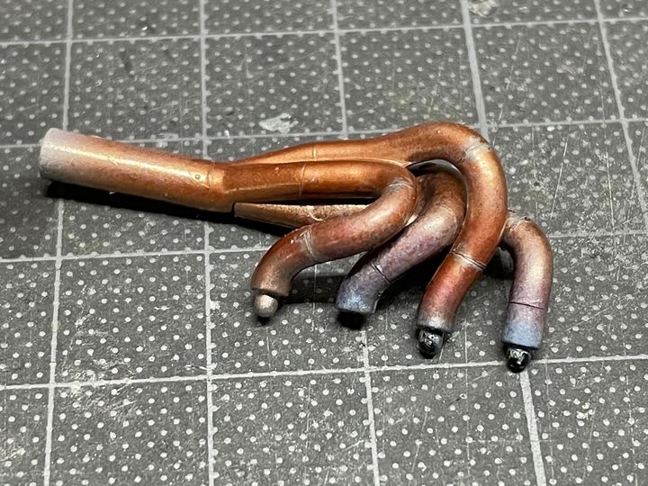 ロータス107シリーズ製作、マフラー焼け塗装にチャレンジ。今回も今後の備忘録兼ねて工程を詳しく。
