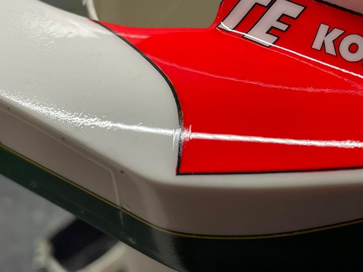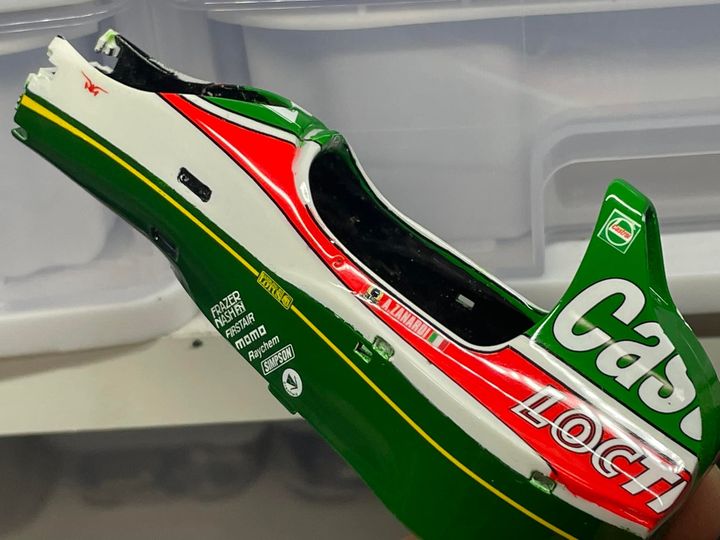 ロータス107シリーズ製作、クリア掛けしたパーツを全力研ぎ出し中。