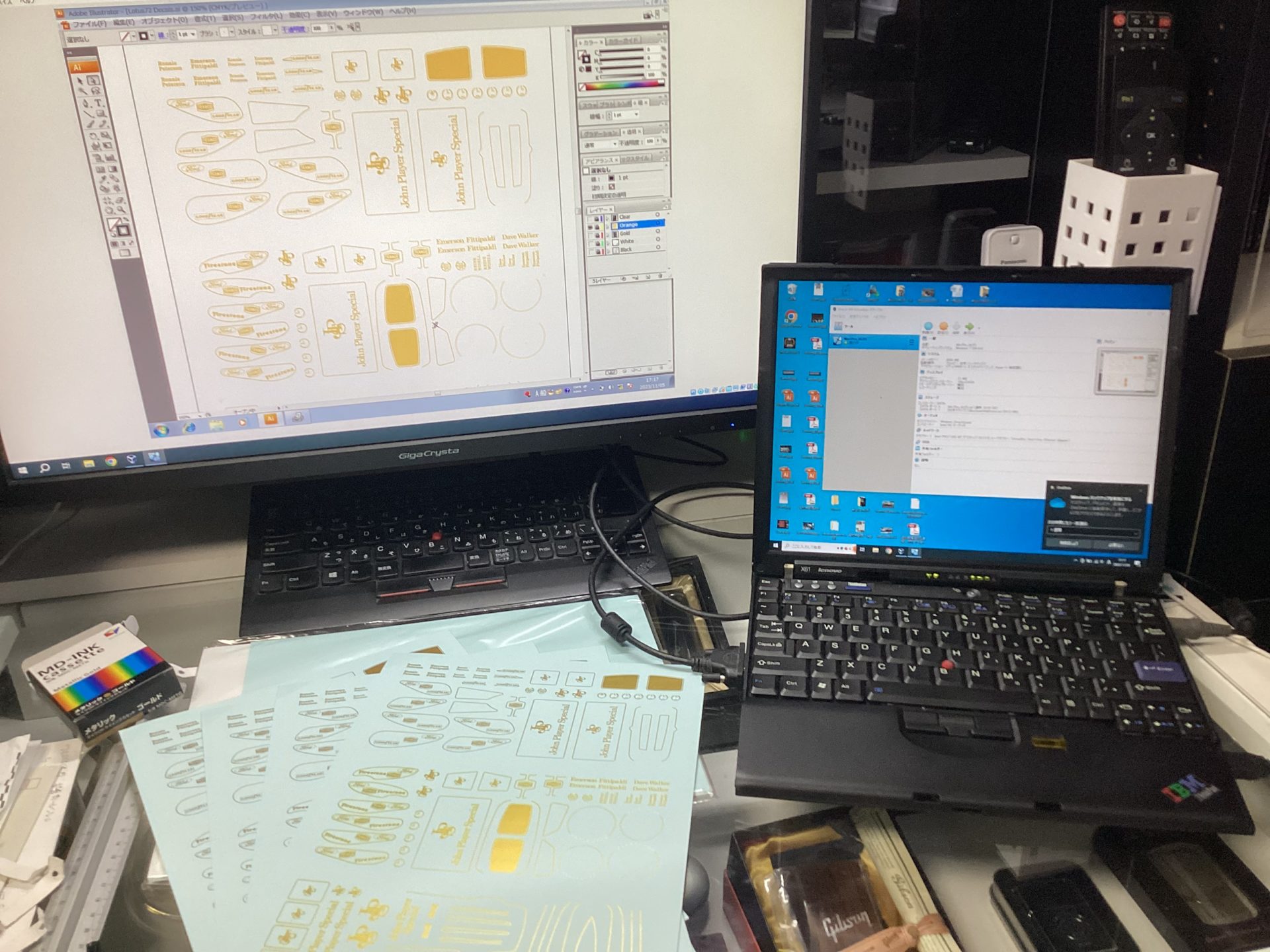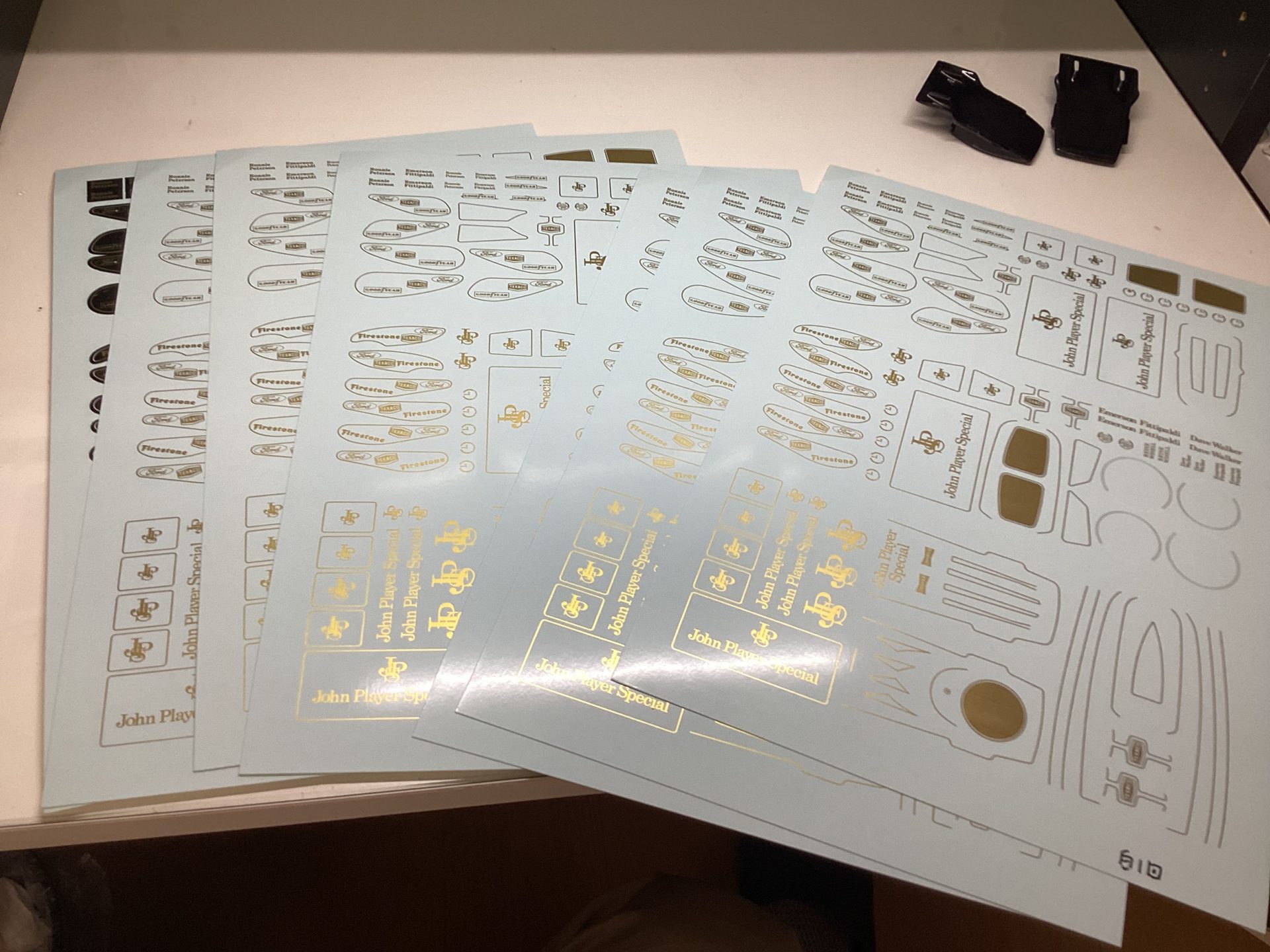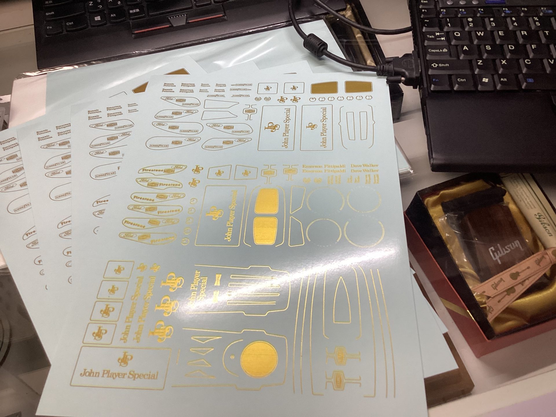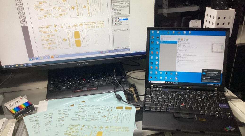 1/20 Lotus 72 by Ebbro, Factory EBBRO 1/20 Lotus72製作 Vol.29 2023-11-06 Ketteringham Factory コメントする Tweet ロータス72シリーズ製作、JPSデカールの印刷。 毎度お馴染みALPSのマイクロドライプリンター、前回は故障で製作を断念、そしてSSDのクラッシュでロストした版下データを作り直し、ようやくここまで来た…と思ったら、スペア含めあと一枚という所でまた故障してしまった… 象のロケットに修理依頼するとしてもフォーラムにはまず間に合わない。デカールは取り敢えず今出来ているモノで乗り切るしかなくなった。 Tweet