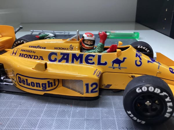 デカールはDecal Pool、マンセルヘルメットは最初ミュージアムコレクションを使ったけどヘンだったのでCLUB Mのロータス88に付いていたものでやり直し、足りないロゴはまたALPSで作った。