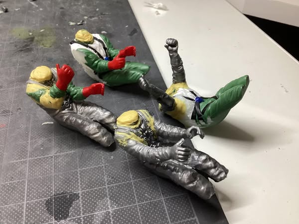 4台それぞれのシーンに合わせた決めポーズを作り、エポキシでラフに整形。